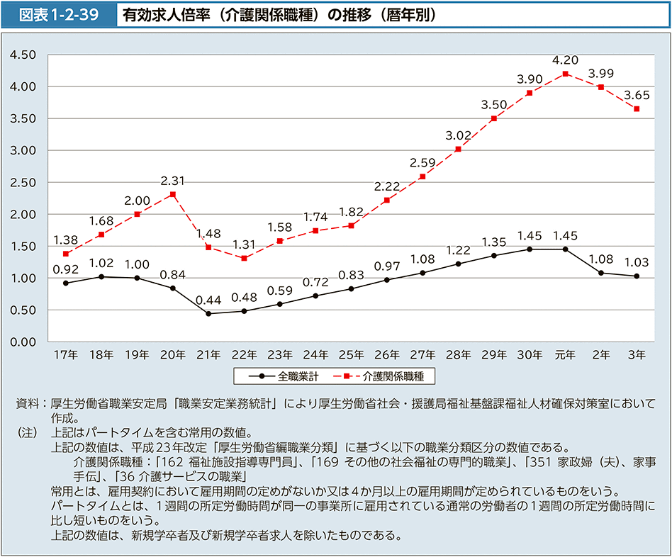 全職種平均の有効求人倍率(約1.28倍)と比べると、